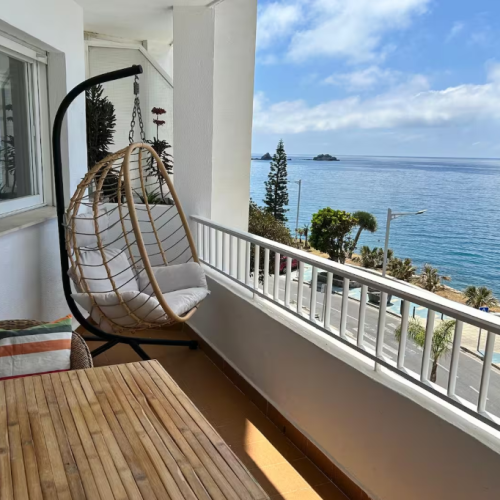Alojamiento en primera línea de playa. Terraza frente al mar. Parking privado cerrado. Equipado con dos amplios dormitorios con dos baños completos con plato de ducha y bañera. Cocina completa y salón comedor.
